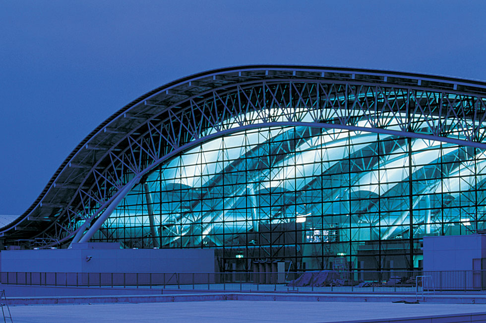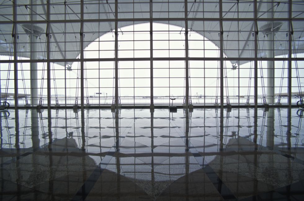 El estilo ‘high-tech’ domina en la forma ondulante del tejado del Aeropuerto Internacional de Kansai, en Osaka (Japón), de Renzo Piano, una de las mayores terminales aeroportuarias del mundo.