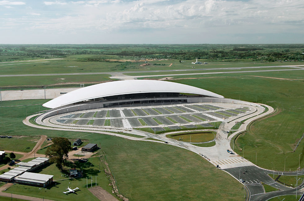 El aeropuerto internacional de Carrasco General Cesareo L. Berisso, a 17 kilómetros de Montevideo, está cubierto por un techo que mide 365 metros de largo. Fue proyectado por el arquitecto uruguayo Rafael Viñoly.