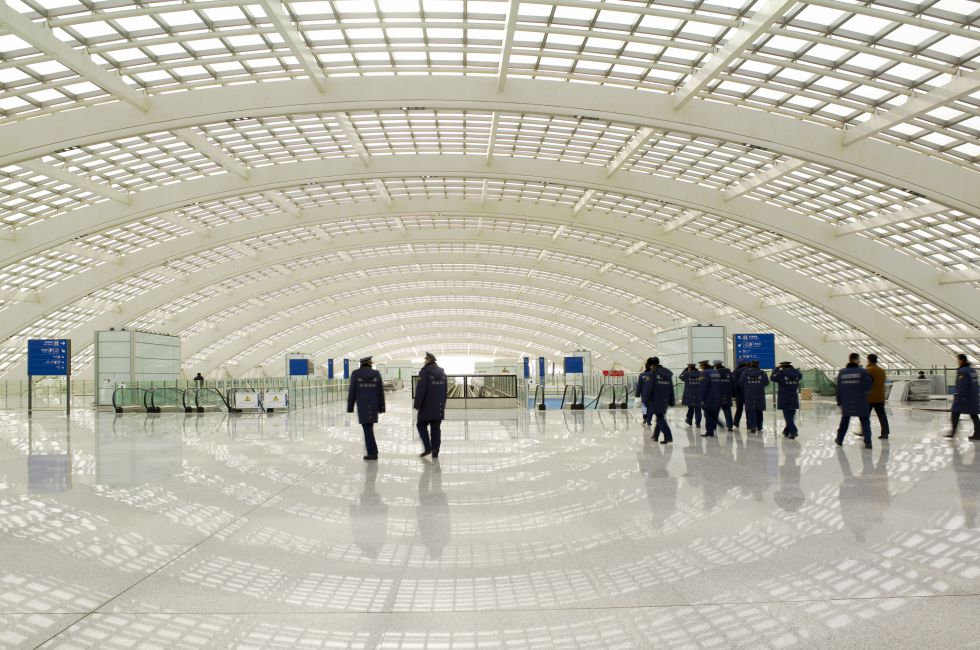 Norman Foster proyectó para Pekín la terminal 3 del aeropuerto internacional, con capacidad para recibir 50 millones de viajeros al año. Se construyó en cuatro años, se inauguró en febrero de 2008 y su techo mide 360.000 metros cuadrados. Su forma es la de un “dragón aerodinámico”.