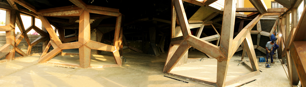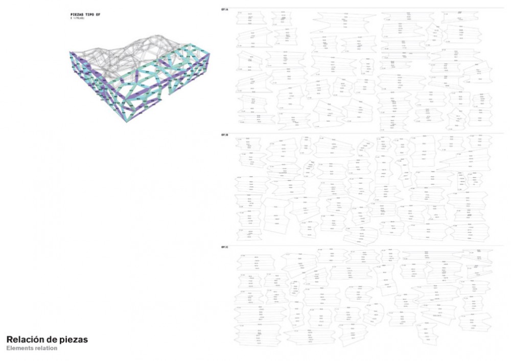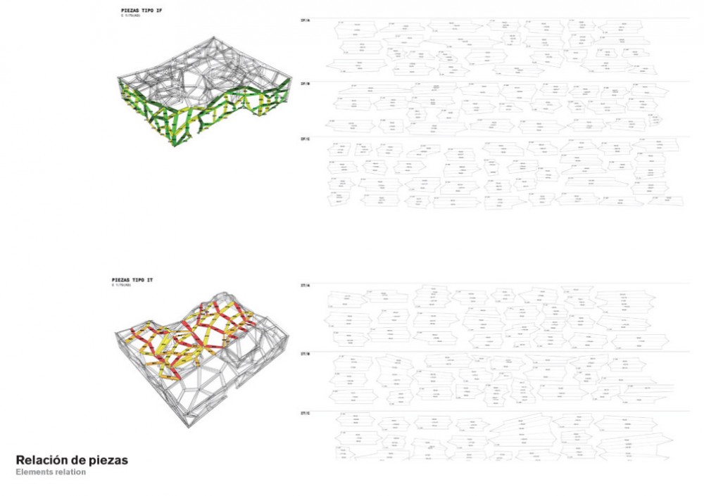 Como solución, se propone realizar una malla metálica tridimensional formada por más de 300 piezas diferentes y que al deformarla, estirarla y moldearla, se adapta a la arquitectura existente del edificio donde se inserta.
