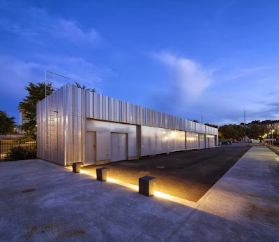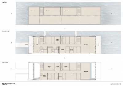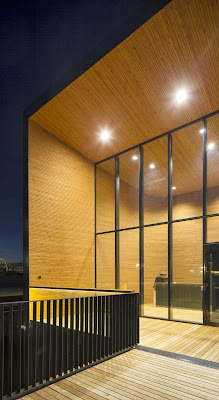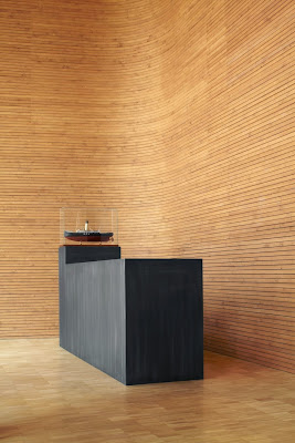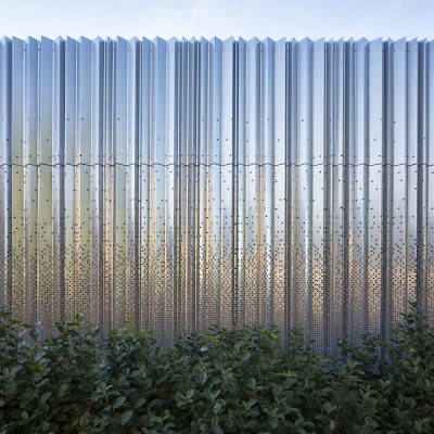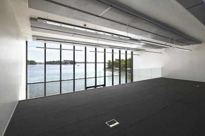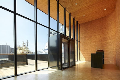 La volumetría horizontal y fachadas de acero negro personalizadas se relacionan con los cascos negros de los barcos. El interior de la “nave de acero negra” está hecho de madera lacada que se relaciona con la tradicional construcción de de los barcos en sus inicios. Las fachadas del edificio son hechos en base a perfiles de acero de onda y patrón personalizado. Existe una gradiente y el patrón abstracto perforado en los perfiles de acero se relaciona con cristales de hielo y los patrones textiles de marinero.