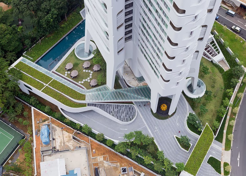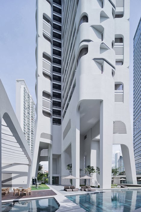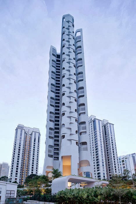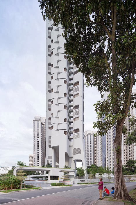 An elaborate facade comprising curved edges, deep recesses and sliced windows wraps this 135-metre skyscraper by Dutch office UNStudio in Singapore (+ slideshow).