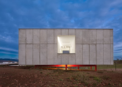 Spanish architects Taller Básico de Arquitectura hoisted this pair of concrete laboratories in northern Spain onto red metal stilts.
