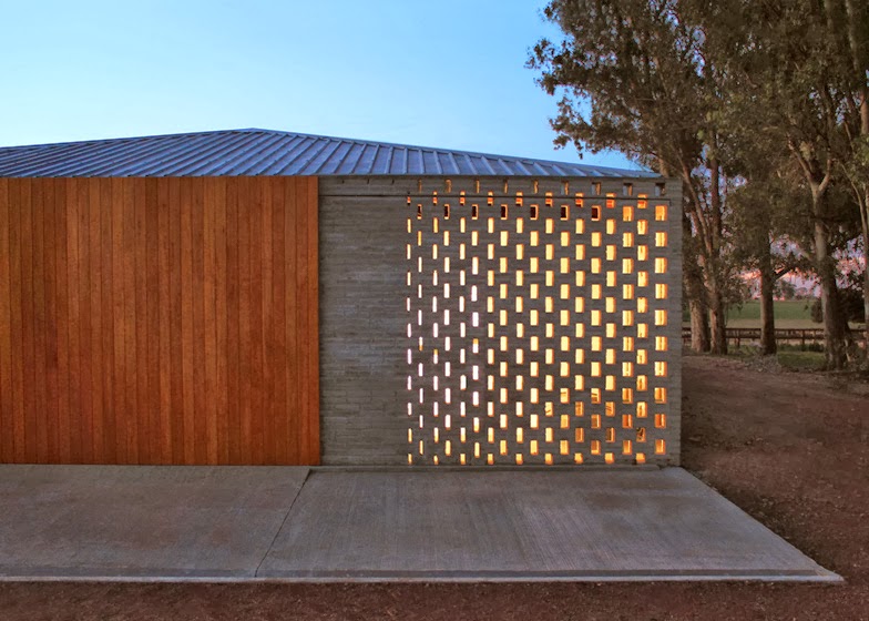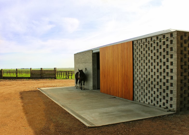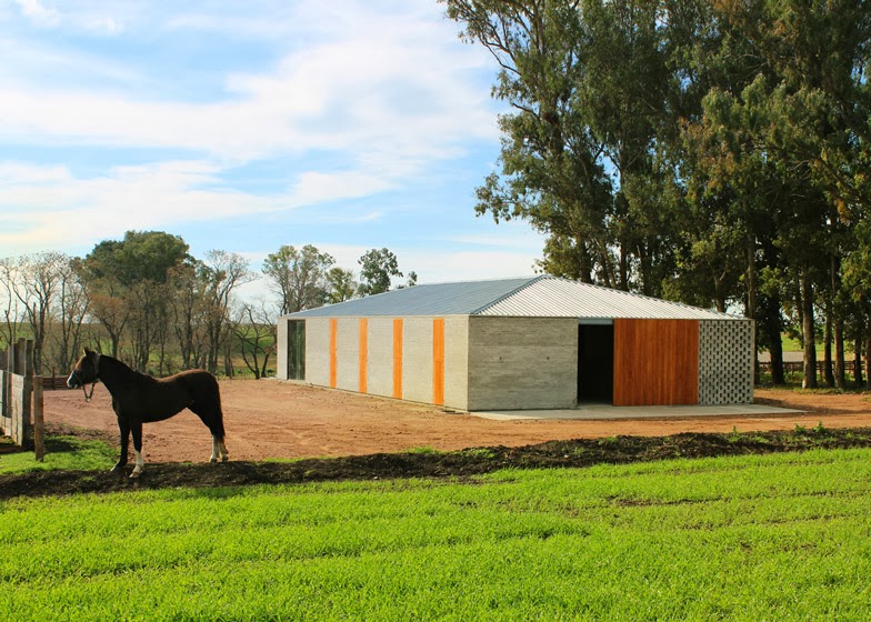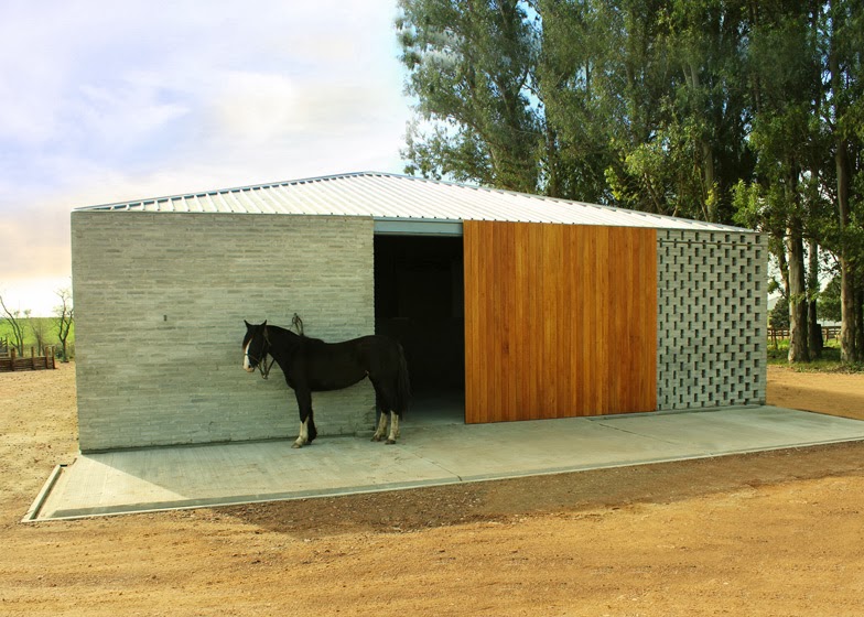 Perforated walls and sliding timber doors feature in this stable in Uruguay by architect Nicolas Pinto da Mota (+ slideshow).