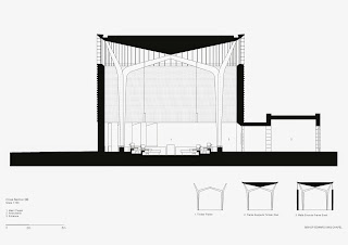 El punto de partida de este proyecto fue la palabra oculta ‘nave’ en el centro del poema Lightenings viii de Seamus Heaney. La palabra describe el espacio central de una iglesia, pero comparte el mismo origen que ‘navis’, un barco, y también puede significar el centro inmóvil de una rueda giratoria. De estas palabras, dos imágenes arquitectónicas surgieron. La primera es el hueco en el suelo, como el lugar de encuentro de la comunidad, el centro fijo. El segundo es la estructura de madera como la de un barco delicado que flota por encima de la copa de los árboles, el lugar de reunión para la luz y el sonido.