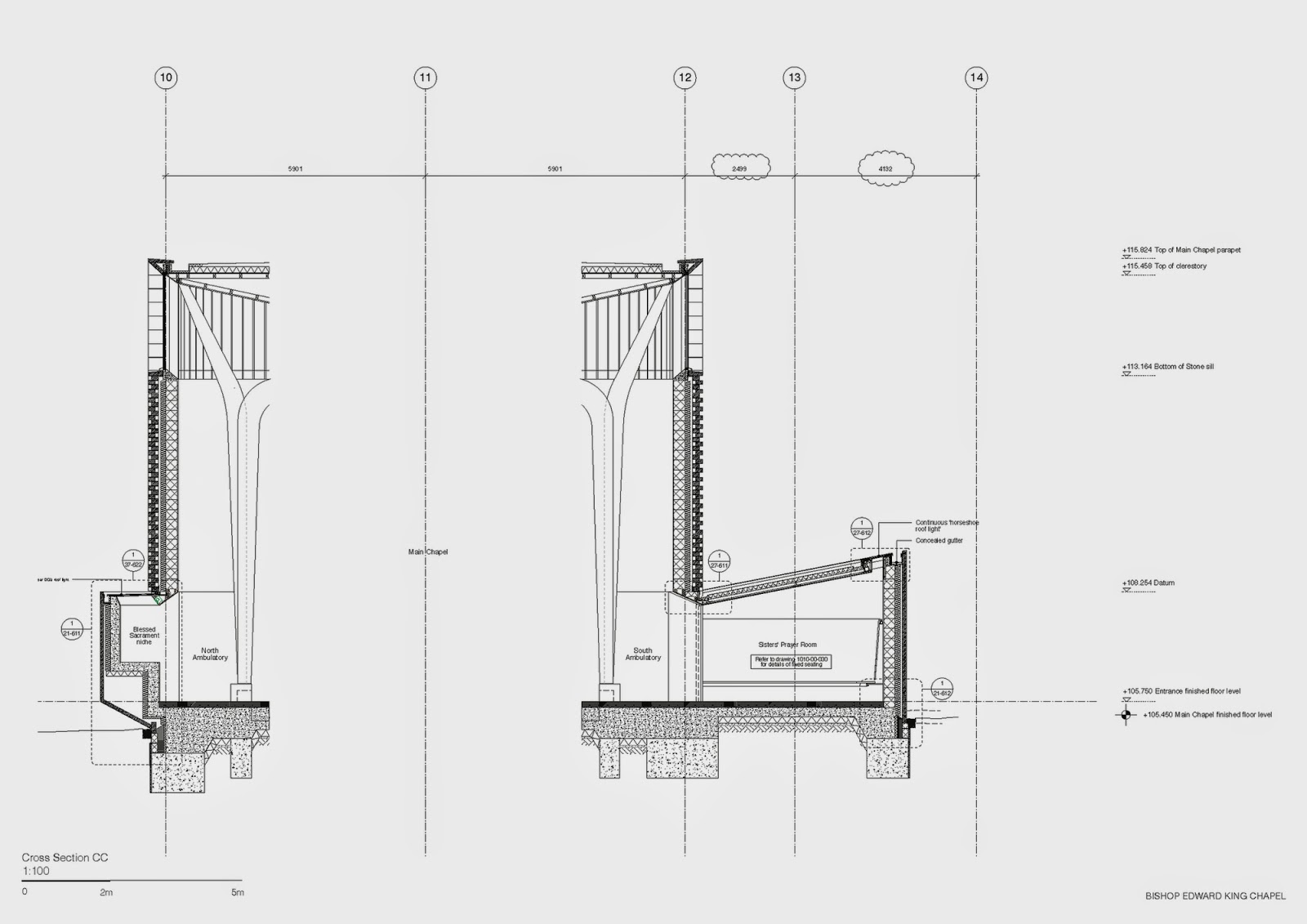 Además, el encargo tenía la visión de un espacio separado para las Hermanas, una amplia sacristía, y el alojamiento auxiliar necesario. Además de estos requisitos, el encargo enunciaba las aspiraciones del cliente para la capilla, ante todo, como ‘un lugar de encuentro personal con lo numinoso’ que permita a los ocupantes a pensar creativamente acerca de la relación entre el espacio y la liturgia. El cliente resumió sus aspiraciones para el proyecto con las palabras de Philip Larkin de su poema Church Going, ‘Es una casa seria en tierra seria… lo cual, una vez escuchó, era adecuada para crecer en sabiduría…’.