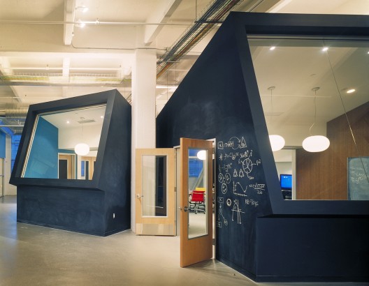 Just from reading the names, we begin to see where each space falls within the public-private spectrum, and what’s more, within the extrovert-introvert spectrum. The Office Forum, resembling a small plaza with lots of open space and seating to facilitate the casual exchange of ideas, is quintessentially extroverted. But the Box, an enclosed, private space that limits stimulation (and provides acoustic as well as visual separation), is quintessentially introverted, providing the structure for more individual work.