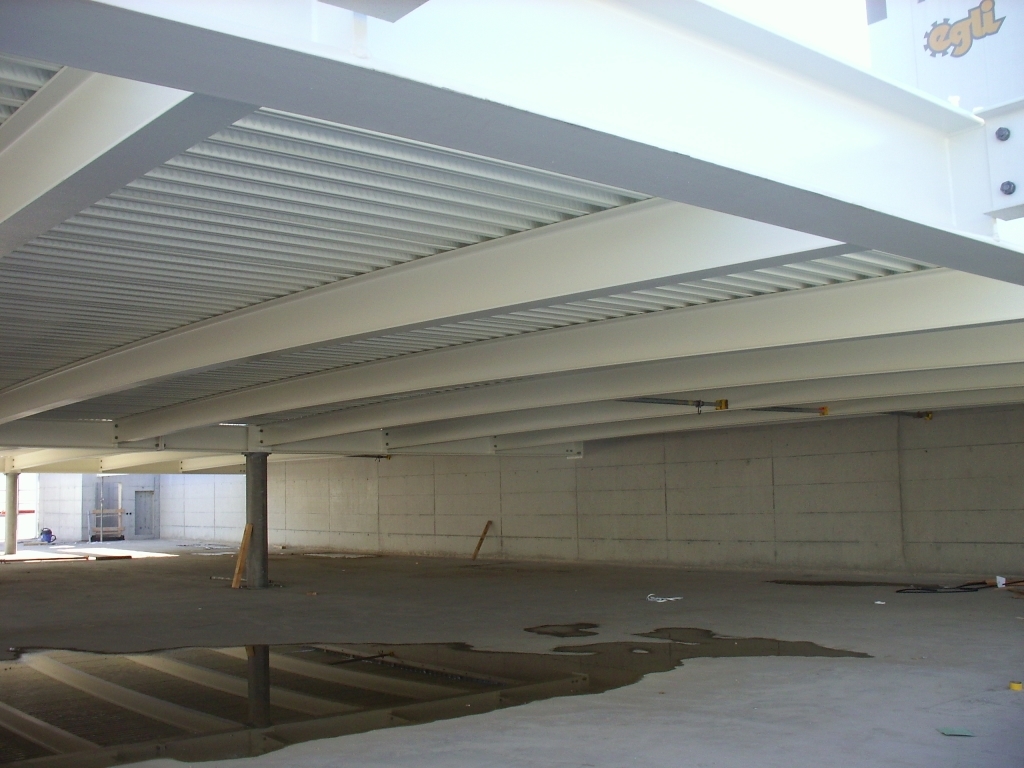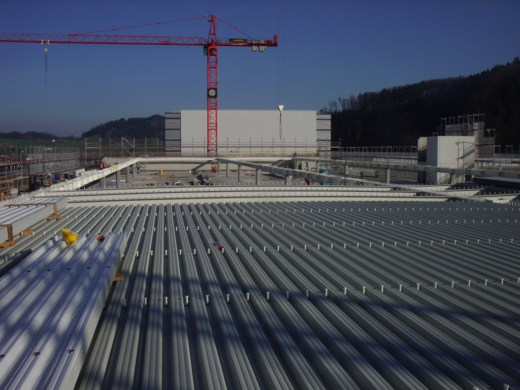ArcelorMittal participó desde el comienzo: debido a la necesidad de crear una estructura ligera con una máxima capacidad de carga, ArcelorMittal Construction Suiza propuso una solución de forjado colaborante con Cofraplus 60. Con una altura de losa de 140mm, el sistema de forjados pesa menos de 2,5kN/m2 usando hormigón tradicional. Con más de 7,5m, las chapas de los forjados se perforaron antese para que entraran los conectores de las vigas. Para cumplir el plan de obra, se embalaron las chapas Cofraplus 60 en la fábrica de ArcelorMittal según los  requerimentos lógisticos de instalacion in situ.