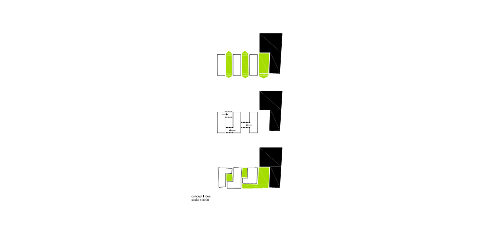 The association of architects MAGK illiz won the competition and was awarded the tender. The draft of the project team MAGK illiz breaks up the construction into L-shaped bodies which are interlaced in such a manner that different places and free spaces to play in and for learning are formed in the interstices.