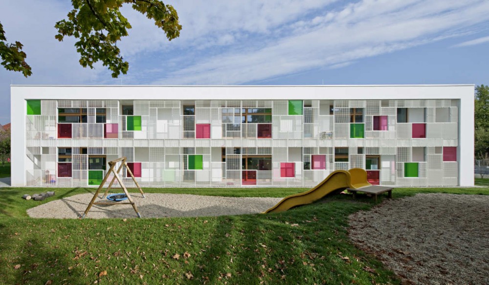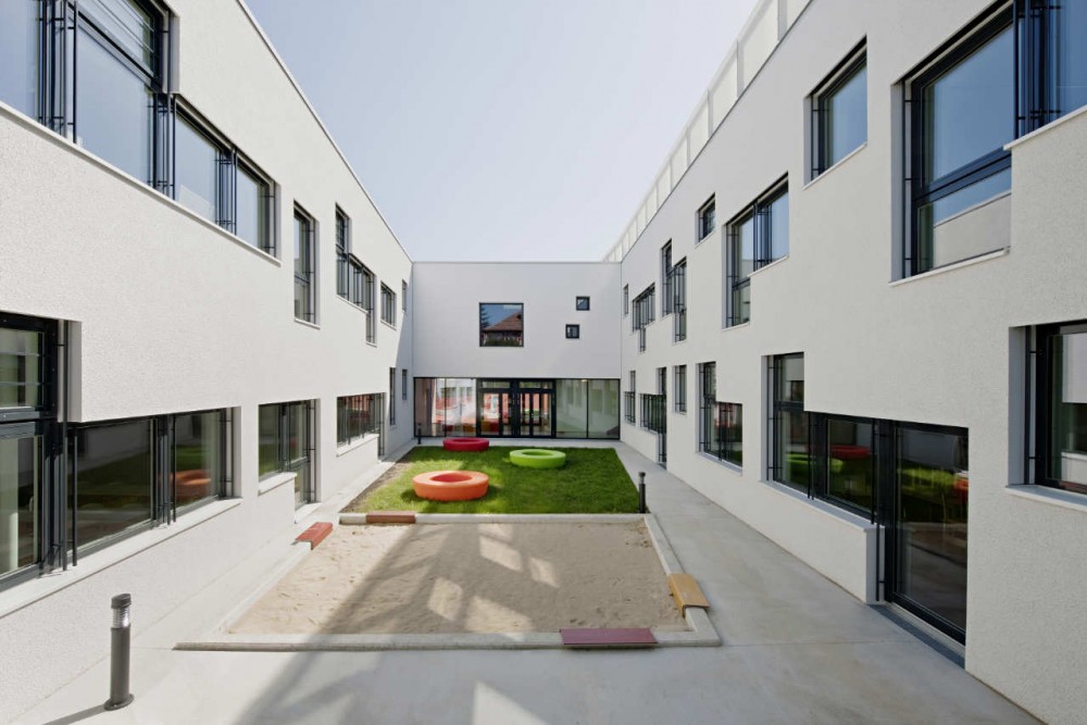 The childcare centre of MAGK illiz is characterised particularly sensitively by the traditional, small dimension structure of the surroundings. The broken building volume is so interlaced that it by no means competes with the environment.