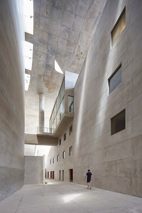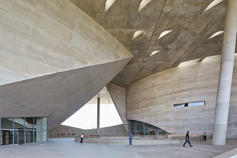 These new images by photographers Hufton + Crow reveal the pairing of angular and curved concrete volumes at the art and music complex completed by French architect Christian de Portzamparc in Rio de Janeiro .