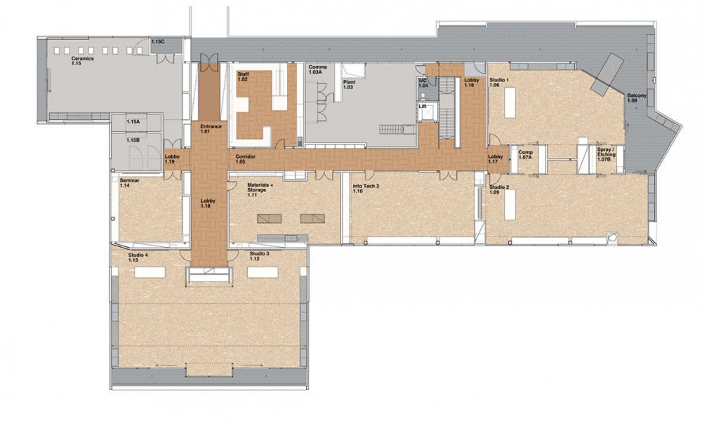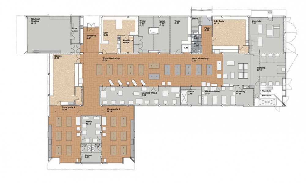 The client, Christ Church Grammar School, requested a new facility that would provide the spatial and functional facilities for manual crafts and visual arts education. It was equally important to the School that the prominent corner site was furnished with an attractive building that positively addressed the school campus as well as the busy streetscape.