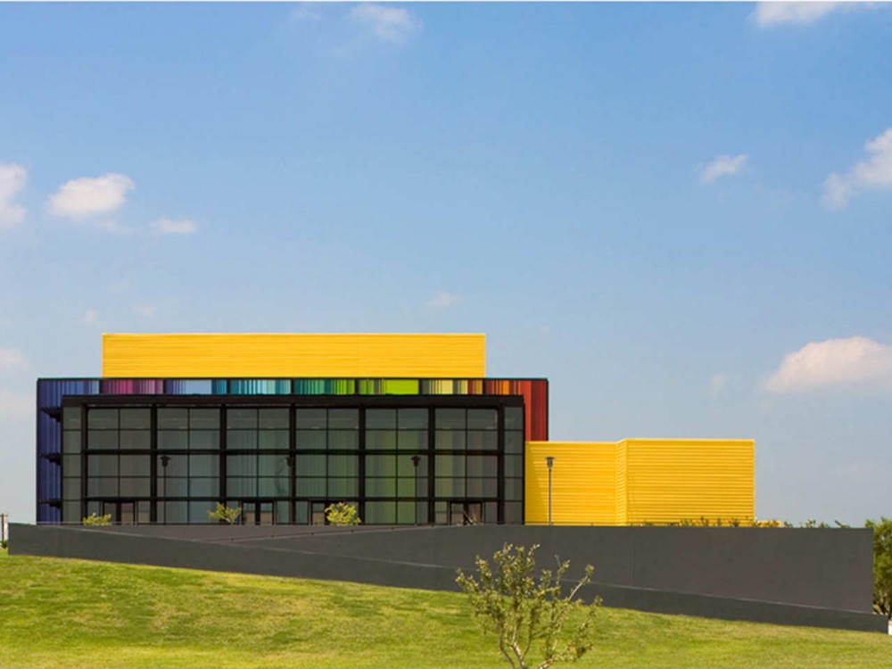 It tells a story…of La Maquina Amarilla (The Yellow Machine) a rallying cry that defines the spirit of the people of this area. La Maquina Amarilla is recorded as a *Corrido or Border Folk Song that is a part of the oral history of the city. The sound patterns of La Maquina Amarilla have been interpreted as a mural which wraps the building, creating an icon of cultural voice through which every visitor must enter.