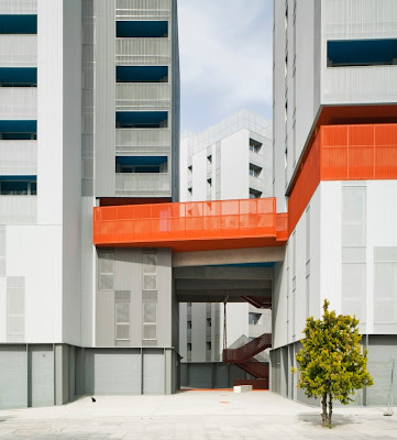 No es muy comun ver fachadas metálicas en edificios de vivienda en España ya que existe una cierta tradición que prefiere el uso de ladrillo, hormigón o materiales cerámicas para este tipo de construcciones. El complejo arquitectónico de Coslada demuestra de manera innovadora que las carácteristicas estéticas y funcionales del acero no solo convencen en edificios industriales en las que su uso está mucho más extendido.