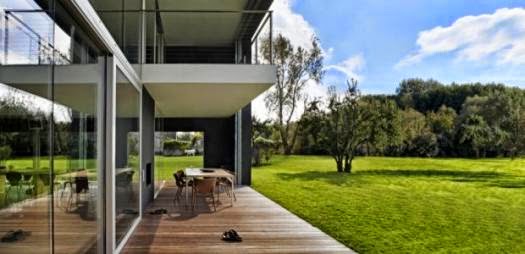 sus paredes móviles, de hasta 2,2 metros de grosor, hacen que la casa pueda pasar de una moderna mansión minimalista acristalada a inexpugnable cubo de hormigón armado en apenas unos segundos. en caso de peligro, la vivienda se cierra a cal y canto haciendo imposible que ninguna amenaza exterior pueda acceder. incluso cuenta con un puente levadizo.