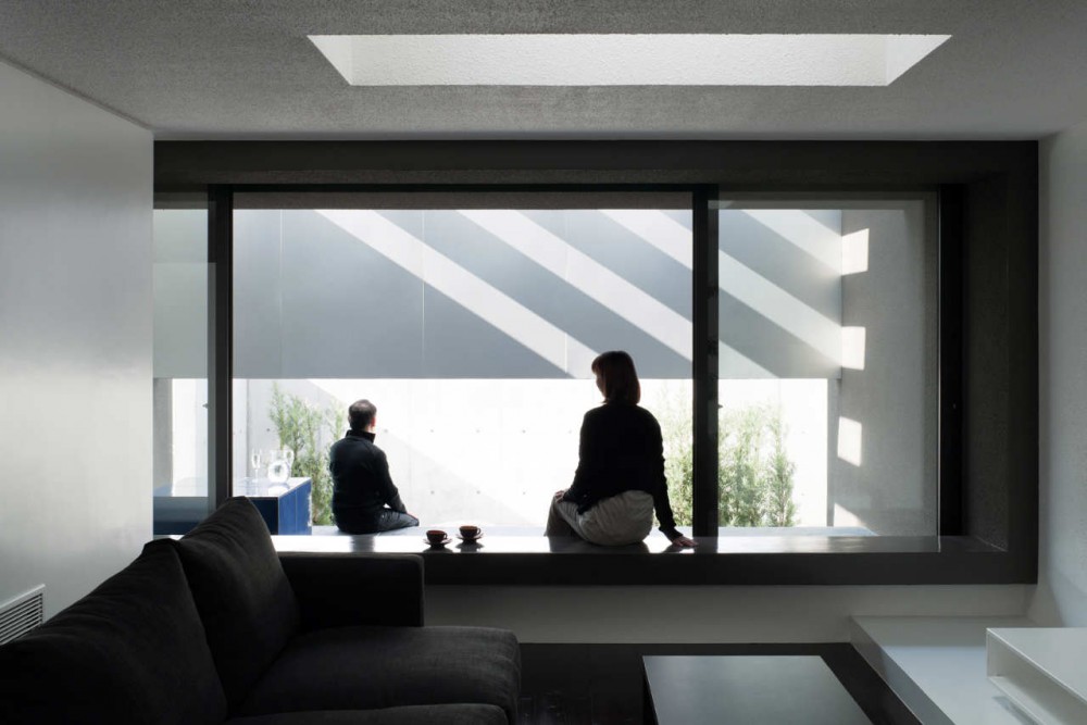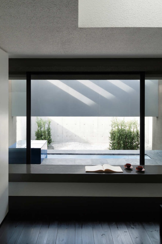 The house was carefully designed to connect the exterior and interior – the concrete wall is built to interrupt lines of sights and noises from the road, and the hanging wall is also established in front of the opening.
