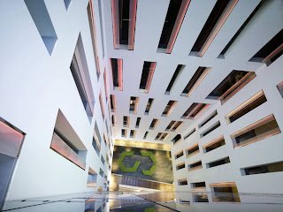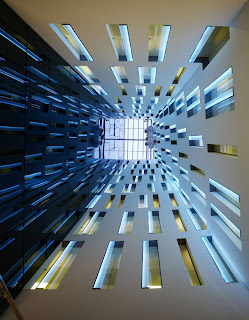 Following the guide-line traced by our overpowering neighbor, we definitely accepted to integrate in our design the Fibonacci-series, which mathematically define the proportions in nature, let´s say, between trunk, branch and twig during the growing of a tree. As may be observed in the rhythm of the openings in the central courtyard, the somehow intellectual procedure of following an abstract order is not necessarily incompatible to the will of form. The lively composition shows an astonishing likeliness to the interior of the cathedral-towers.