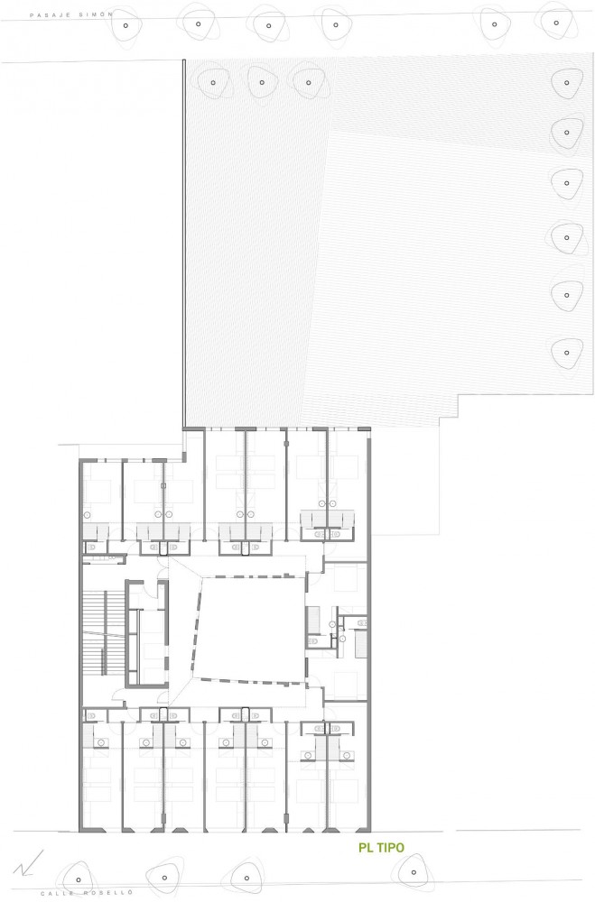 The initial difficulties we found in our first design attitude helped us to discipline our proposal, adopting the regular traces of the façades which are the characteristic pattern of the “Eixample”, built on the master-plan designed by the civil engineer IldefonsCerdá in 1860. Although rejected by the upcoming industrialists who were the protagonists of the technical revolution, due to its egalitarian grid which did not satisfy their idea of a city as a mirror of the new economic order, it was imposed by the Spanish Central Government of Madrid to the Municipality of Barcelona.