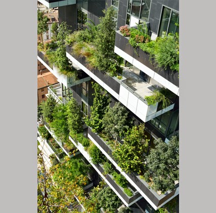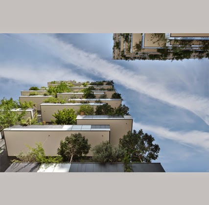 Inaugurado en Milán el ‘bosco verticale’ de Stefano BoeriEn el centro de Milán, junto a la torre Unicredit del arquitecto argentino César Pelli, se alzan dos reascacielos residenciales —de 112 y 80 metros de altura, con 73 y 40 apartamentos, respectivamente— en cuyas fachadas crecen más de mil especies vegetales diferentes. El proyecto ‘Bosco verticale’ del estudio Boeri, que comenzó a construirse en 2008, está concebido como un experimento arquitectónico y botánico y definido por el concepto de reforestación metropolitana. Balcones escalonados de hormigón contienen árboles, arbustos y enredaderas, entre otros tipos de plantas, con el fin de generar microclimas para las viviendas. La vegetación reduce el consumo de energía al regular la entrada de luz, y, a su vez, actúa como barrera protectora de la contaminación acústica y partículas de polvo. Mientras que los paneles fotovoltaicos contribuyen a la autosuficiencia del complejo, las aguas grises se reutilizan para el riego.