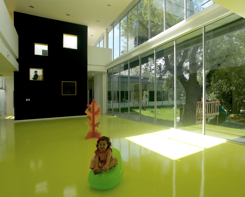 El corazón del edificio es el salón polivalente de doble altura, el cual tiene una relación directa con el jardín en las dos plantas. Desde el segundo piso se puede tener un control de todo el espacio del salón con la finalidad de tener contacto directo tanto de los directores del kinder como de los padres de los niños para supervisar las actividades que realicen los maestros con los niños.