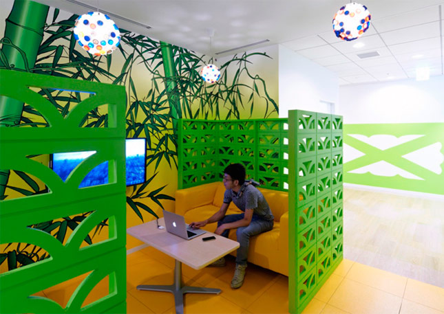 Cada uno de los espacios a disposición de los empleados de la multinacional estadounidense utiliza un color característico asociado al logo de Google.