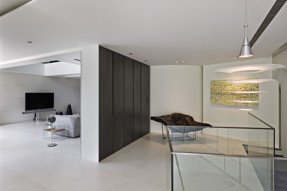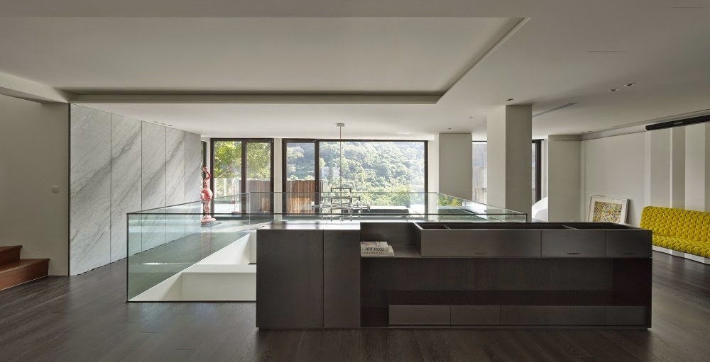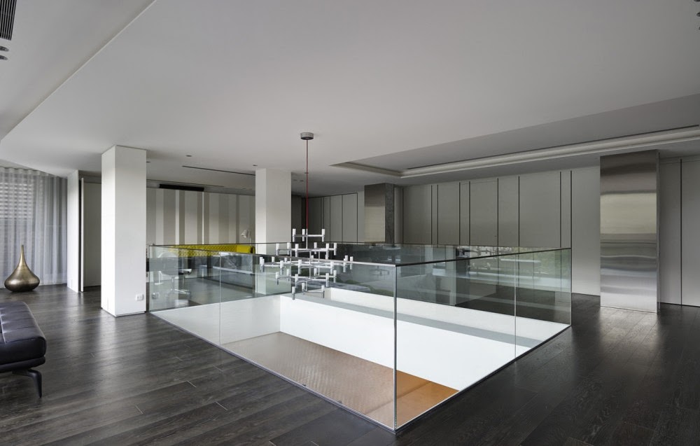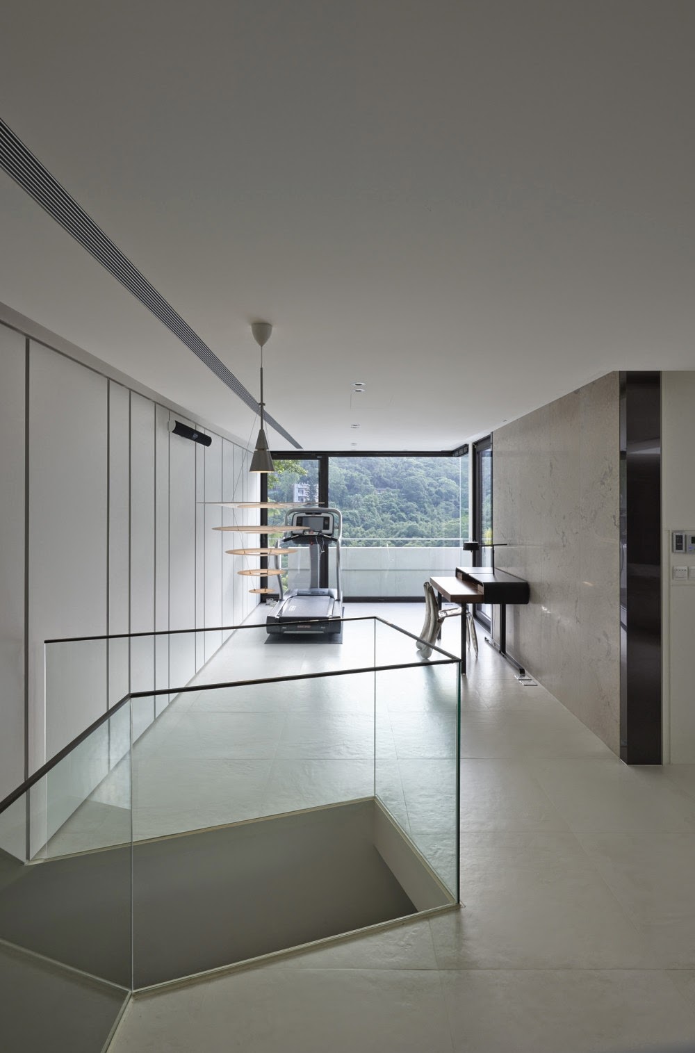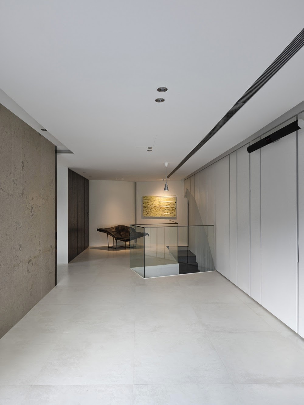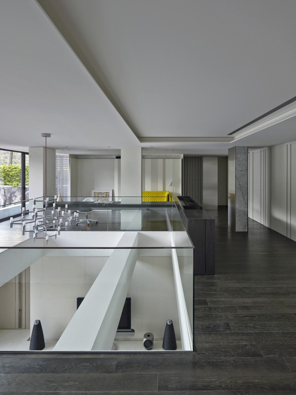 Para continuar con la planta libre, hemos separado los pilares de soporte de las paredes que subdividen el espacio. Así, los pilares de acero inoxidable se convierten en los puntos visuales en medio del espacio. La circulación en el segundo piso fluye dentro de un cuadrado, incluyendo dos dormitorios, una sala de estudio y una sala de juegos.