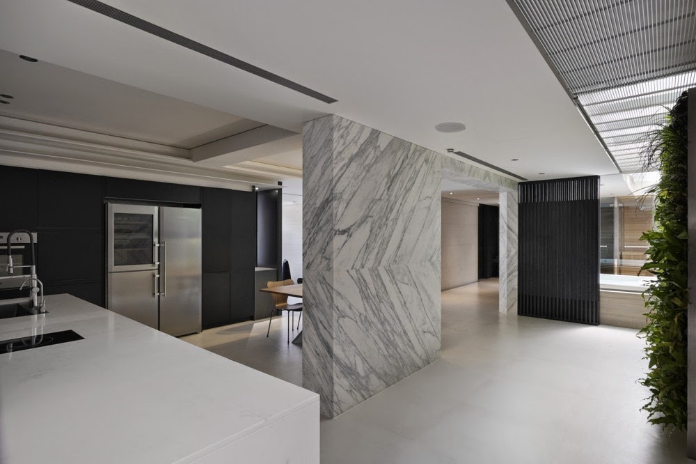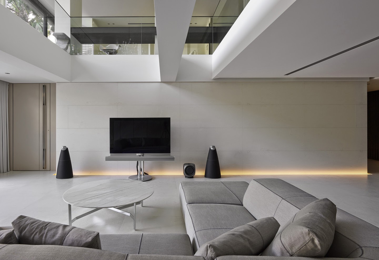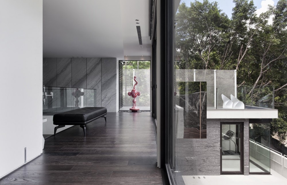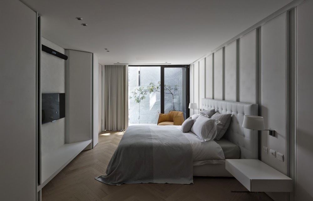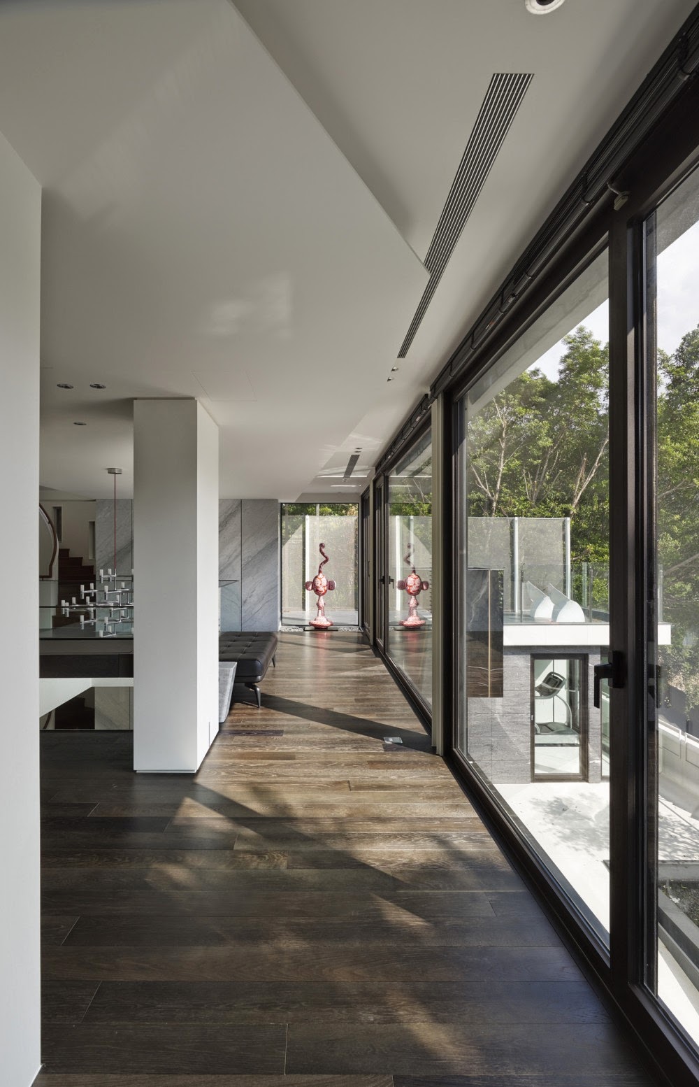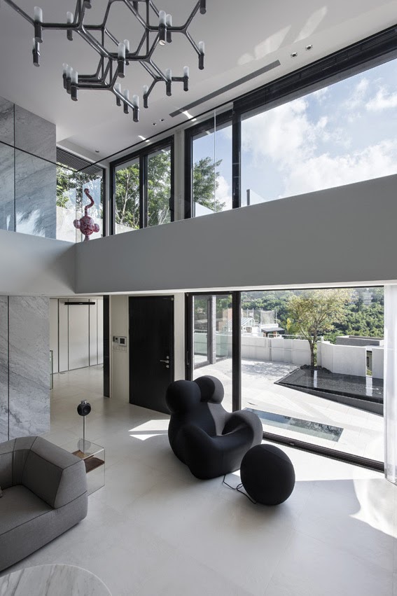 Para continuar con la planta libre, hemos separado los pilares de soporte de las paredes que subdividen el espacio. Así, los pilares de acero inoxidable se convierten en los puntos visuales en medio del espacio. La circulación en el segundo piso fluye dentro de un cuadrado, incluyendo dos dormitorios, una sala de estudio y una sala de juegos.