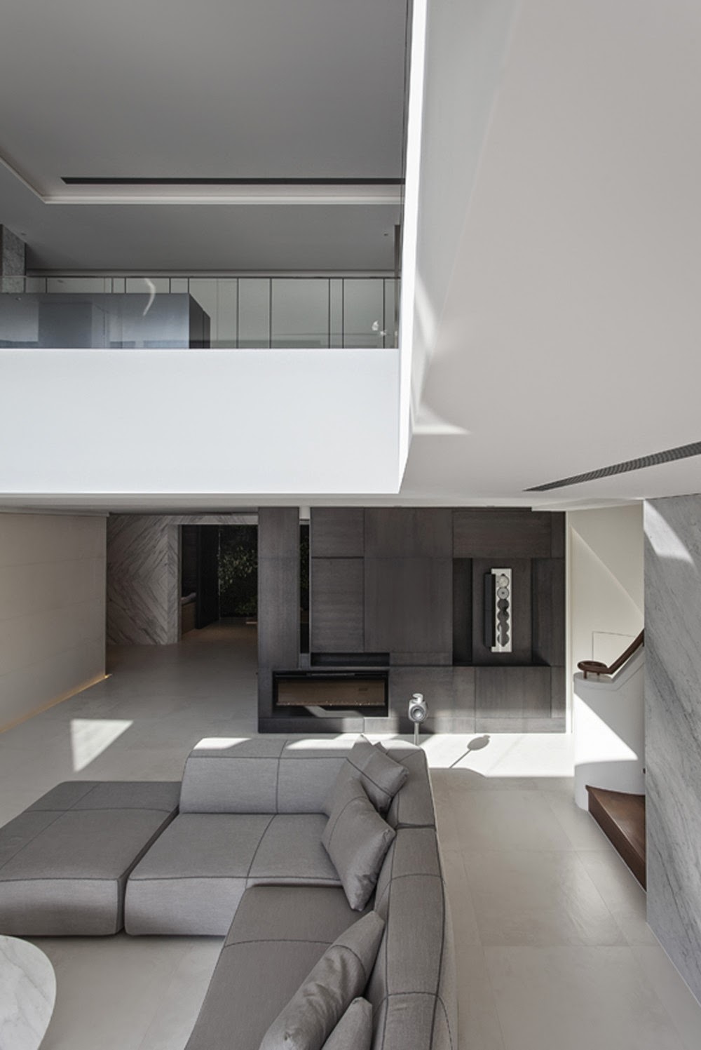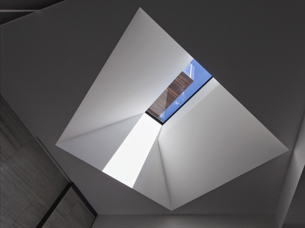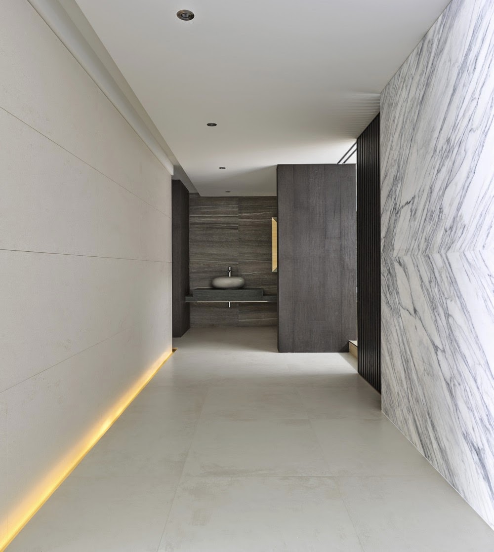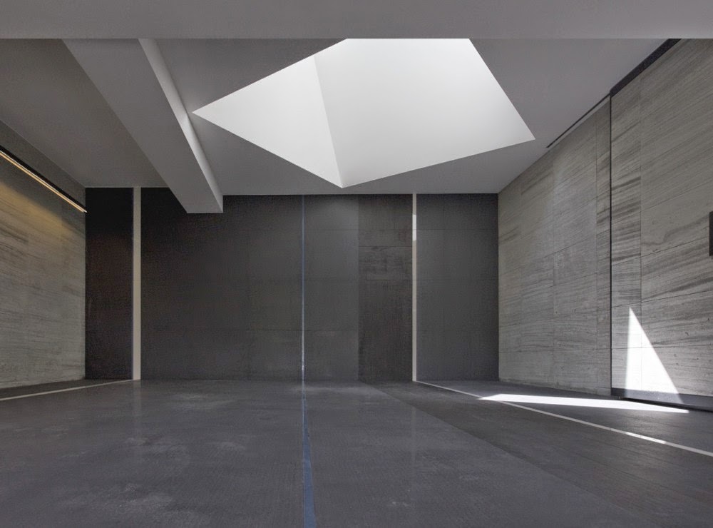 El nivel del garaje se combina con tres tipos de cerámicas que se encuentran en diferentes escalas. Al final del garage, hemos construido un tragaluz en la parte superior que presenta la belleza lineal de la modernidad.