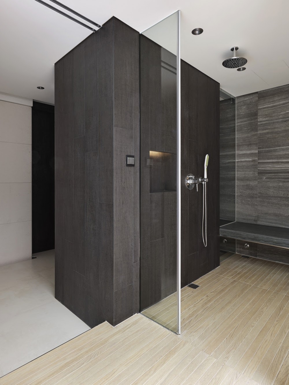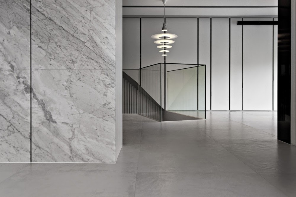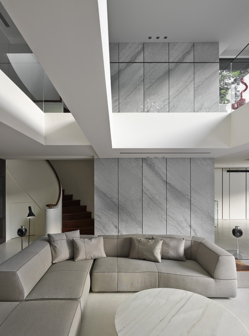 El nivel del garaje se combina con tres tipos de cerámicas que se encuentran en diferentes escalas. Al final del garage, hemos construido un tragaluz en la parte superior que presenta la belleza lineal de la modernidad.