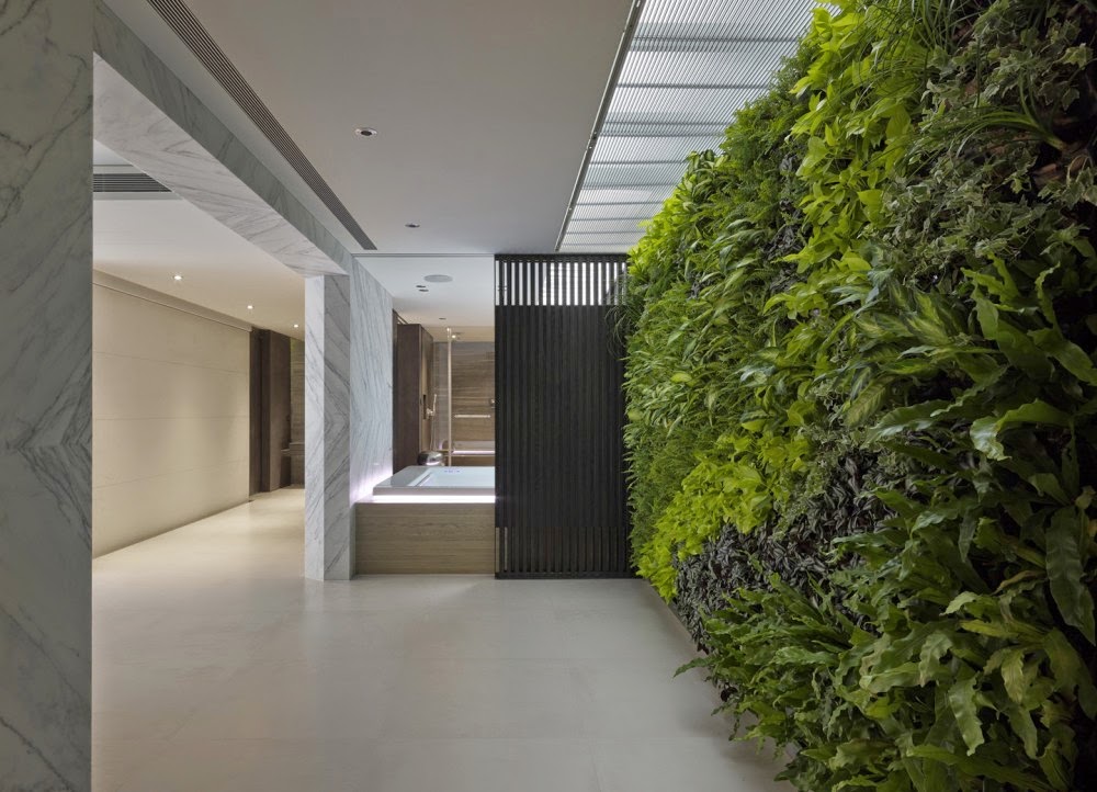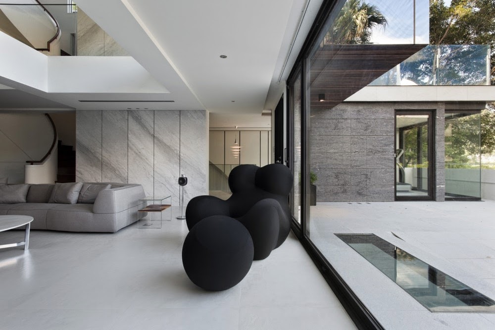 Persiguiendo los 5 puntos de una nueva arquitectura de Le Corbusier, se ha utilizado una fachada con textura natural, además de un atrio de 4 x 4 m, en donde aparece una viga expuesta que funciona como línea de fuerza para intersectar la estructura.