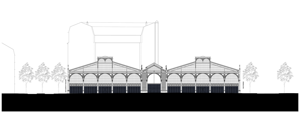 En su diseño, la arquitectura studioMilou buscó ‘idealizar’ este monumento que aparece haciendo hincapié en la elegancia de su estructura y por lo que es tan transparente como es posible, de tal manera que los transeúntes podrán apreciar la forma poética de su superestructura metálica de un sólo vistazo. Con el fin de hacerlo, studioMilou reemplazó el muro de mampostería que había cerrado previamente el edificio, con cristal, acero y madera de uno, manteniendo la forma de la construcción original, pero creando permeabilidad visual que revela el espectacular espacio interior.