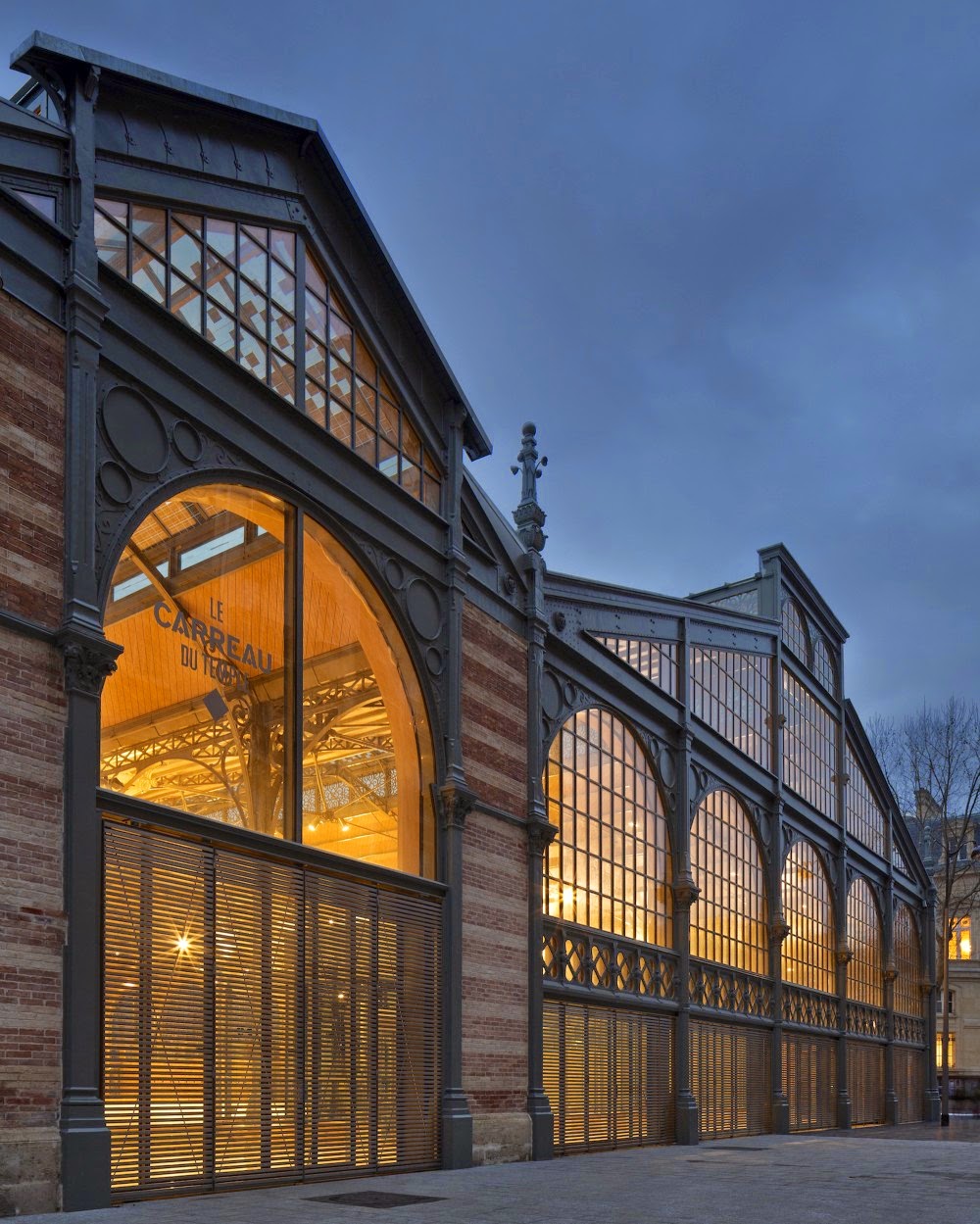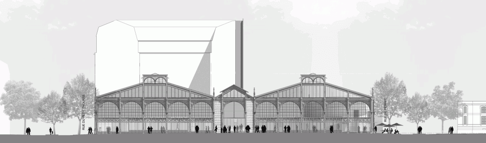 Descripción de los arquitectos. El Carreau du Temple, un mercado histórico de acero y vidrio de 1868, que se encuentra en el distrito de Marais de París, fue reabierto por el alcalde de París el 20 de febrero de 2014. Este edificio, con su arquitectura característica transparente, es una de las pocas estructuras supervivientes de la arquitectura tradicional de marcos metálicos del siglo XIX en París. Fue incluido en la lista del patrimonio de Francia en 1982, cinco años después de la demolición de las Halles de París y sus famosos pabellones Baltard – una pérdida que aún se lamenta amargamente en la actualidad.