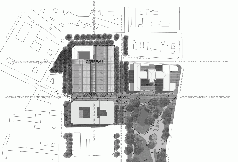 En 2001, se pidió a los residentes locales lo que pensaban que debería convertirse en el Carreau, y fue su voto lo que determinó su futura función de albergar las instalaciones culturales y deportivas. El jurado del concurso convocó en 2007 cinco estudios de arquitectura, adjudicándole el proyecto a la oficina studioMilou architecture, encabezada por su arquitecto fundador, Jean François Milou, y con sucursales en París y Singapur.