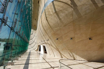 Al entrar en el edificio, al visitante se le abre un pasillo curvado que separa el espacio interior: Parecido a un cañón natural o una cueva iluminada desde arriba, las paredes curvadas representan la separación de las aguas, referiendose al pasaje y la transcendencia del largo trayecto de la historia judeo-polaca de la que nació una cultura pacífica y fértil. Las paredes consisten en una complicada estructura de hormigón proyectado – un reto tanto en el diseño como en la realización.