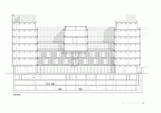 La fachada en Viale Piave cuenta con un sistema de brise-soleil de módulos cuadrados de 3.60×3.60m, superpuestos en forma escalonada, fabricados en acero inoxidable como los listones en la fachada del espacio adyacente Metropol. En la noche los anima la iluminación interior de la fachada y pone de manifiesto el patrón cromático de las ventanas, de cristal transparente en el que se alterna en tonos grises, correspondientes a las ventanas abiertas y aquellas que son fijas. Los siete pisos con ventanas están de pie sobre un zócalo que es similar en el tamaño y materialidad al Metropol, estableciendo una fuerte continuidad visual.