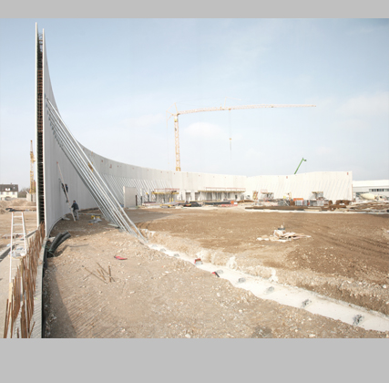 Para sustituir un antiguo pabellón de producción y en línea con la estrategia de la firma suiza Vitra de confíar el diseño de sus edificios a los arquitectos más prestigiosos del mundo, los japoneses de SANAA han levantado, dentro del Vitra Campus —el complejo de la compañía en la localidad alemana de Weil am Rhein, cerca de Basilea—, un edificio circular de 20.000 metros cuadrados de superficie, con un diámetro de más de 160 metros y casi 12 de altura. Adaptándose a las necesidades de amplitud y flexibilidad espacial, la forma en círculo imperfecto, en contraposición a los volúmenes ortogonales del resto del campus, supone la reducción, optimización y organización de los flujos de transporte dentro del pabellón, destinado al diseño de tiendas de la marca. La envolvente se compone de una capa exterior, transparente e incolora, y otra interior, opaca y blanca; a través de un complejo proceso se consigue una sucesión irregular de ondas en los paneles fundidos, reforzando el carácter inmaterial del edificio. Hileras rítmicas de huecos en la cubierta y aperturas aisladas en la fachada iluminan el interior.