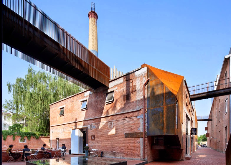 Contrary to the current architectural concept which is becoming finer day by day, materials and techniques with low precision and more direct construction methods are adopted during the renovation. Preserving the original shape and specification of steels, removing all unnecessary processes and decorations, the integrality and independence of every piece of material can be protected. The joint constructions are made as simple and direct as possible to reveal the beauty of power and essence. The weathering steel, naturally mottled and rusted as time goes on, is now talking with the surrounding old brick walls in a whisper. The new buildings have become integrated with the overall historical atmosphere. Therefore the deep industrial temperament of the factory can be further strengthened with its cohesion power.