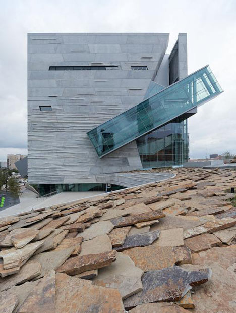 American firm Morphosis has completed a museum of nature and science in Dallas where visitors begin their tour by taking an escalator journey to the uppermost floor.