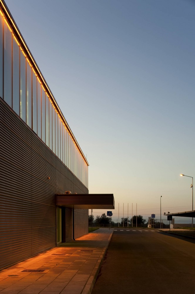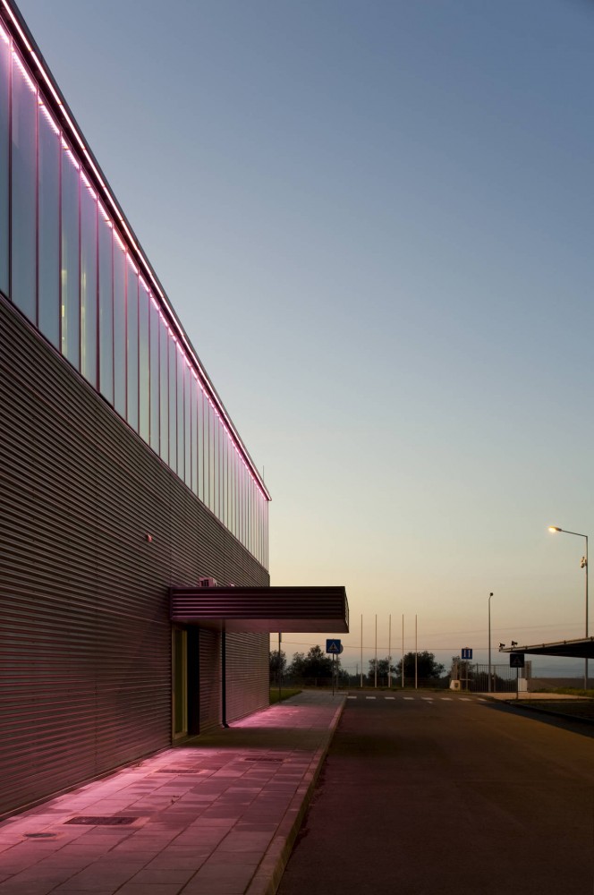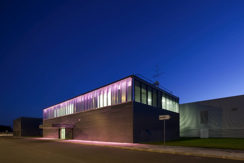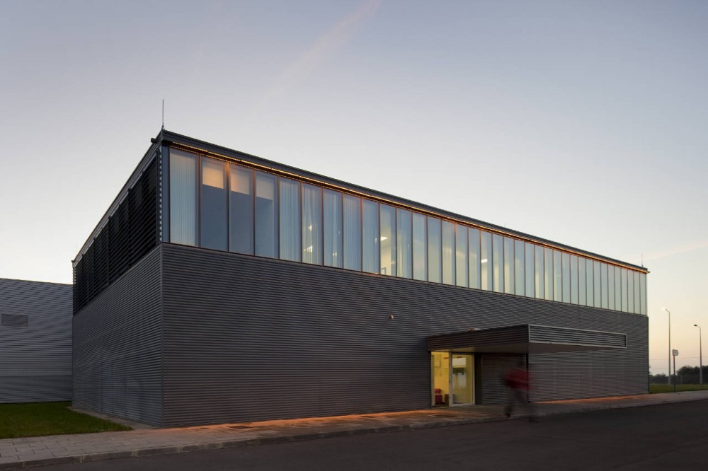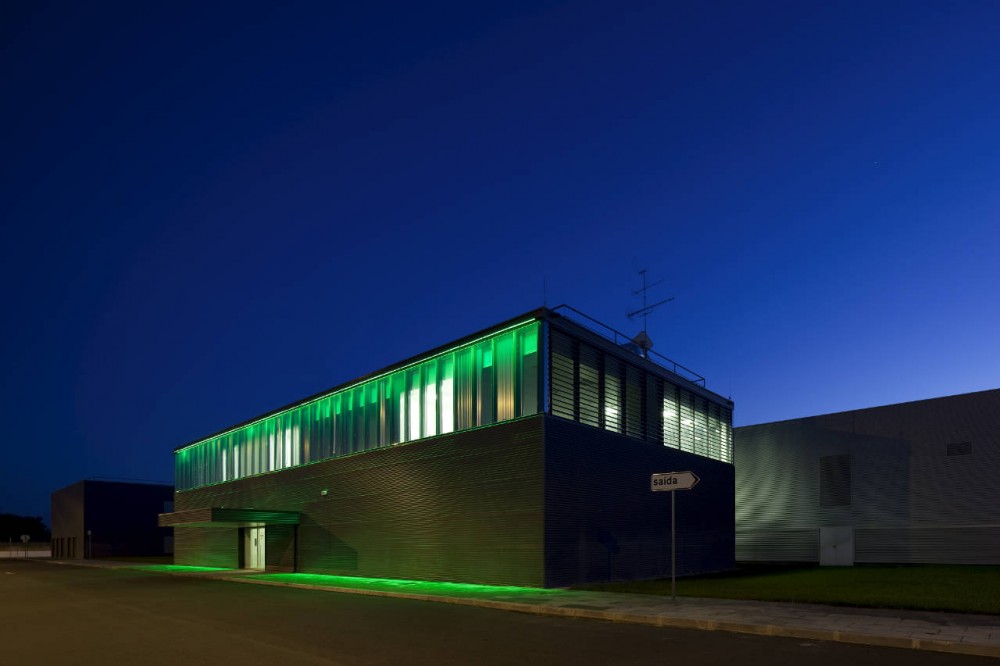 The two storeys Administrative Building and Photovoltaic Panels Factory in Moura, located in the Tecnopolo, is all covered in metal sheet with horizontal orientation, combined with wall-building concerte block and glass.