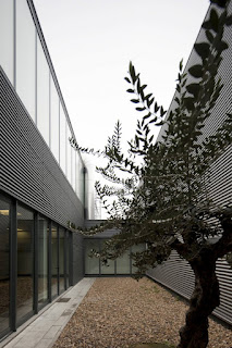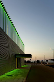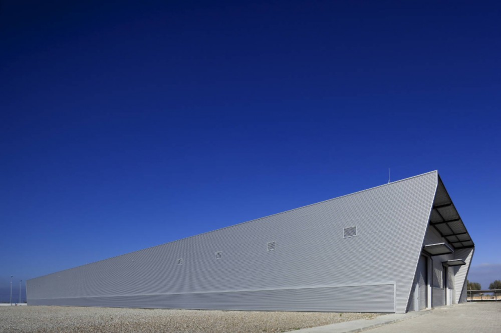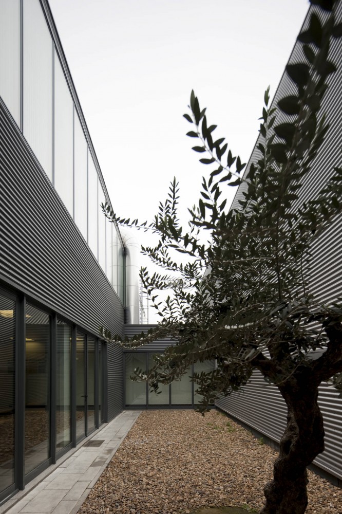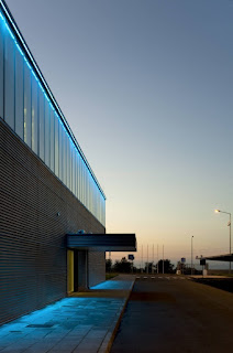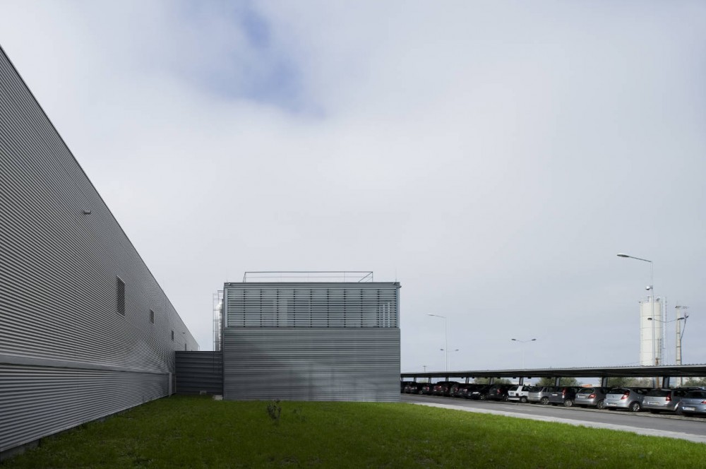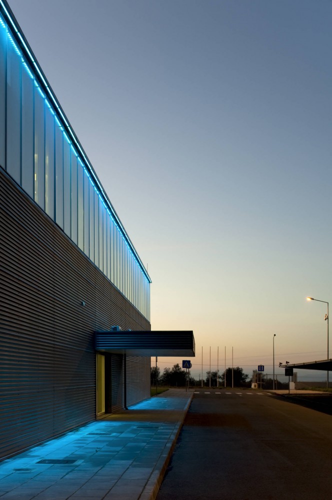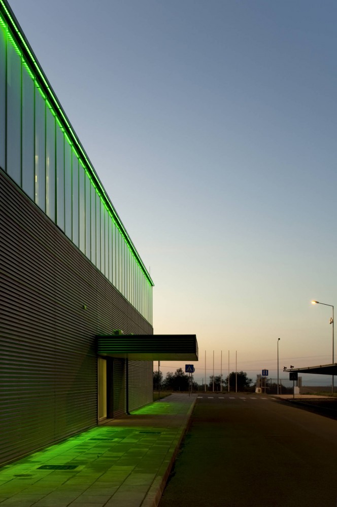 The two storeys Administrative Building and Photovoltaic Panels Factory in Moura, located in the Tecnopolo, is all covered in metal sheet with horizontal orientation, combined with wall-building concerte block and glass.