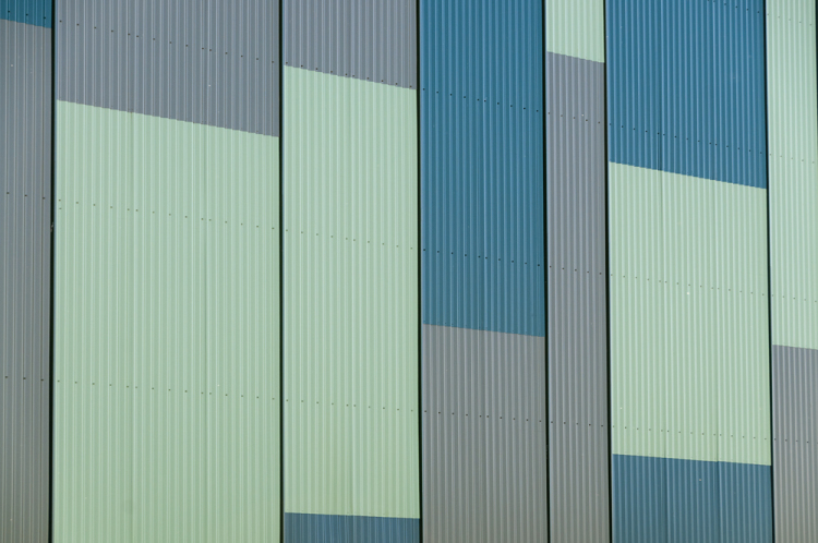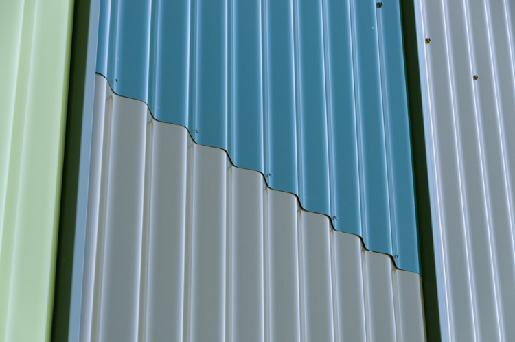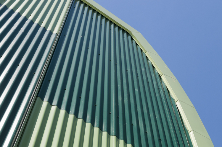Las partes de acero de la fachada están hechas con chapas de acero onduladas de Frecuence 25/115-9B y Frequence 18/76-13B de la gama Arval de AcelorMittal, suministradas por ArcelorMittal Construction Netherlands. Están prelacadas con Hairultra, un recubrimiento resistente a la corrosión, en distintos tonos de verde (colores Tilia 4602, Reseda 4601 Malachite 4659 y Winebottle 4615).