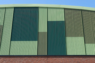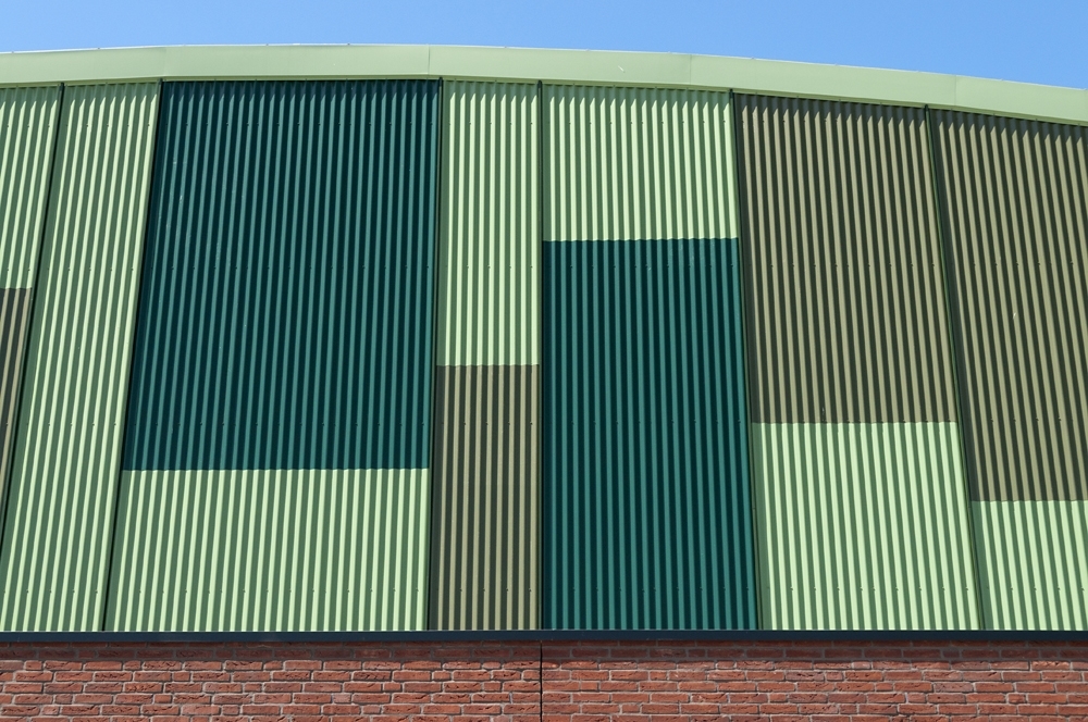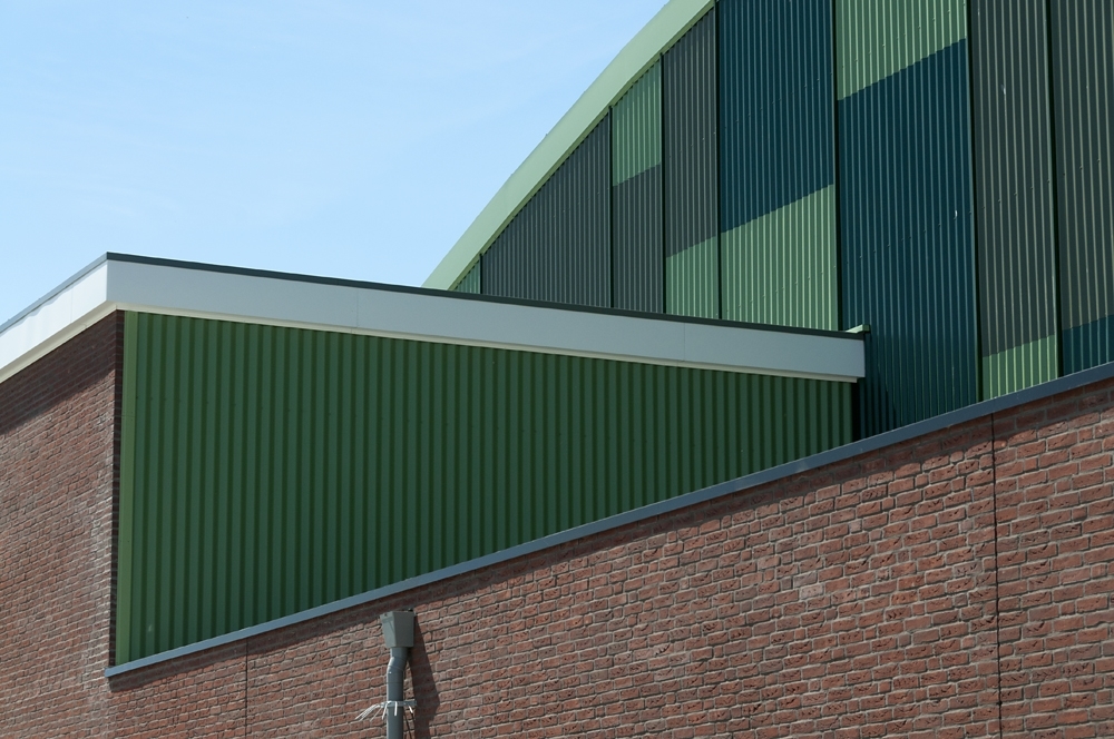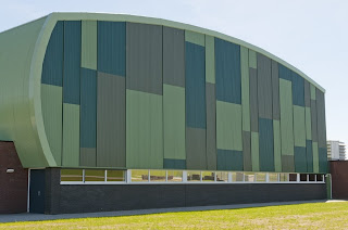 Esta moderna instalación deportiva para actividades de interior y al aire libre, fue construida en el municipio holandés de Nieuwehorne. Parte de sus fachadas imitan los campos de alrededor y están hechas de chapas de acero onduladas Frequence de ArcelorMittal en diferentes tonos de verde.