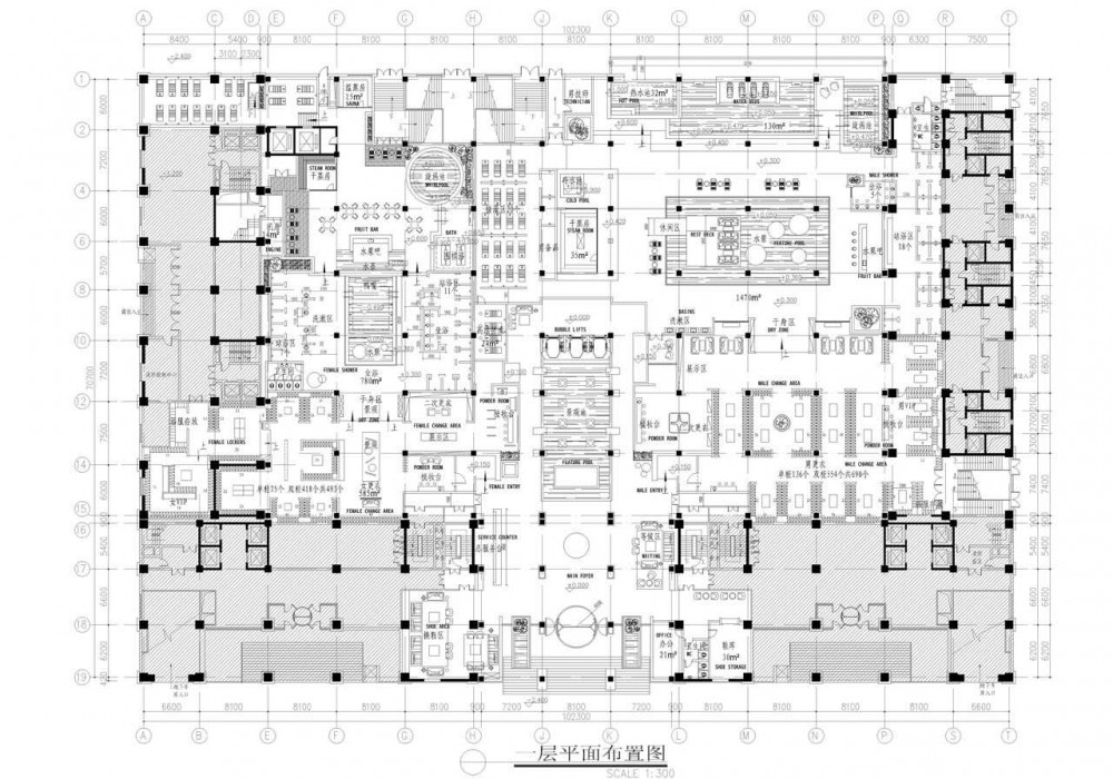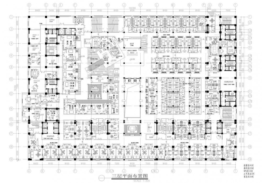 En el tercer piso se encuentra el spa con 41 salas de masaje, 23 salas de Majong (dominó chino), 14 salas de tratamiento, 2 baños turcos, y 24 habitaciones de hotel. Los diseñadores se encargaron de la arquitectura interior así como del diseño de la fachada.
