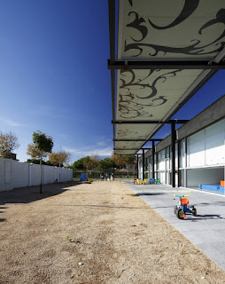 Our kindergarten is located near a future park in front a public building, in Sant Pere Pescador, by the Mediterranean Sea, in Northern Spain. It‘s a small school of one level consistent of a compact set of building and courtyard with a formal simplicity that optimizes its adaptation to the place.