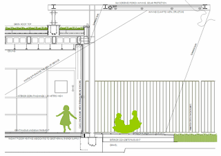 5 main areas are disposed (3 classrooms, multipurpose and administration space) on the Southern Façade with access to the courtyard and totally transparent so as to enhance luminosity. The “service facilities” (kitchen, changing room, and ware house) are located on the Northern Façade and are used as a “thermal mattress” against moisture and wind.