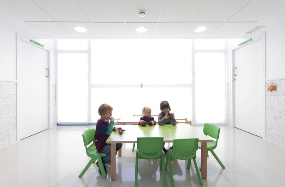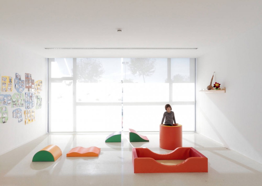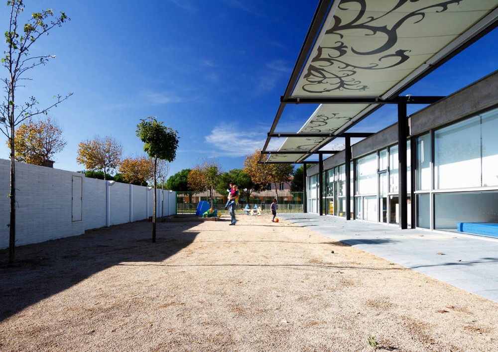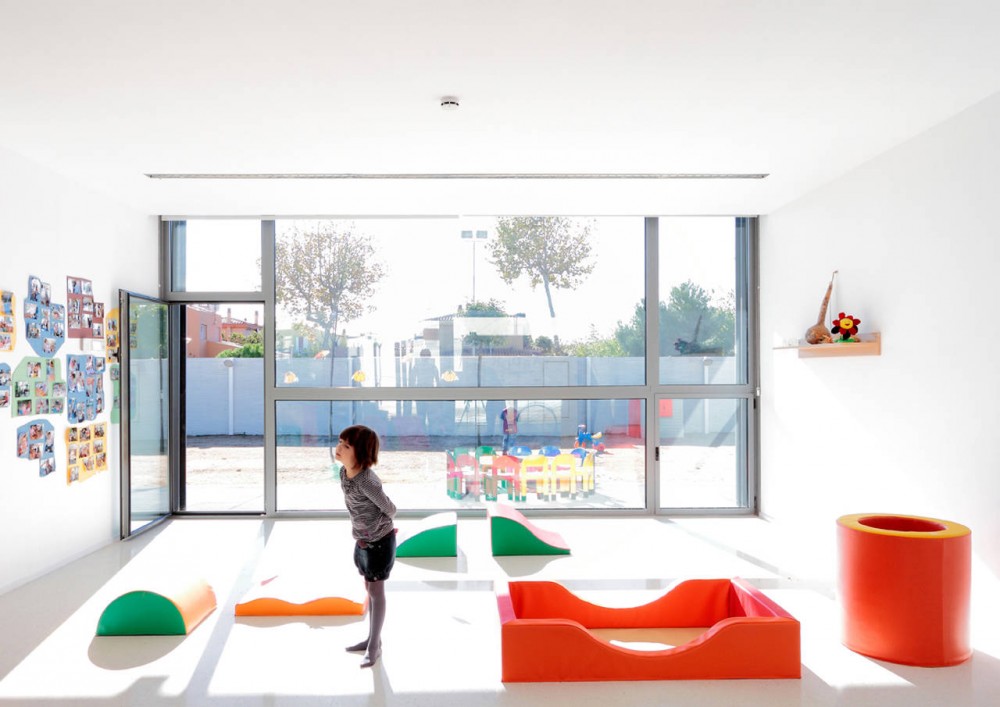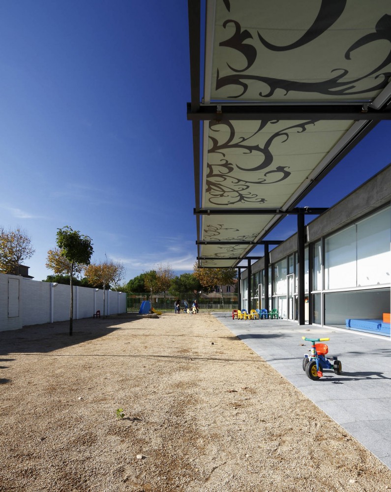 Our kindergarten is located near a future park in front a public building, in Sant Pere Pescador, by the Mediterranean Sea, in Northern Spain. It‘s a small school of one level consistent of a compact set of building and courtyard with a formal simplicity that optimizes its adaptation to the place.