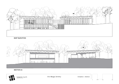 The CSU School of Dentistry building at Wagga-Wagga provides specialist dental teaching facilities for 150 students and a large Public Dental Clinic to serve southern NSW. The building’s design expresses a sophisticated rural aesthetic linking it strongly through form, colour, and materials to its gentle bush site to create a beautiful and striking symbol for the campus.