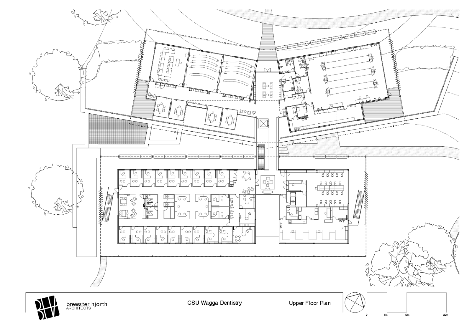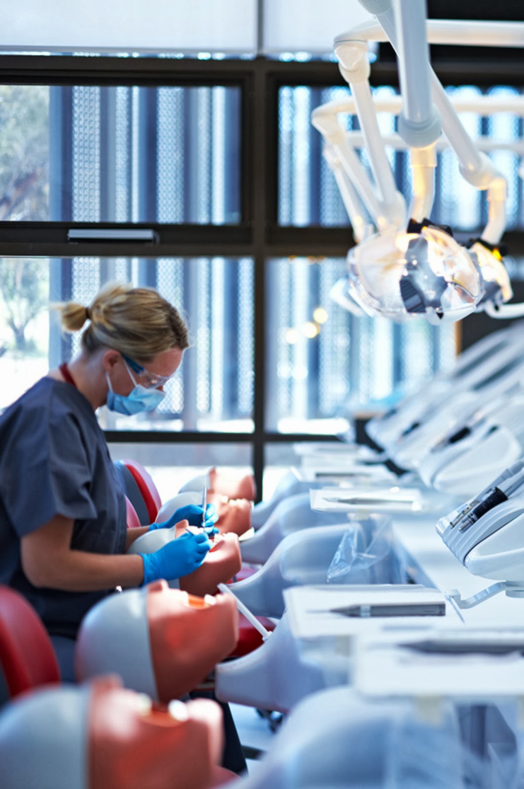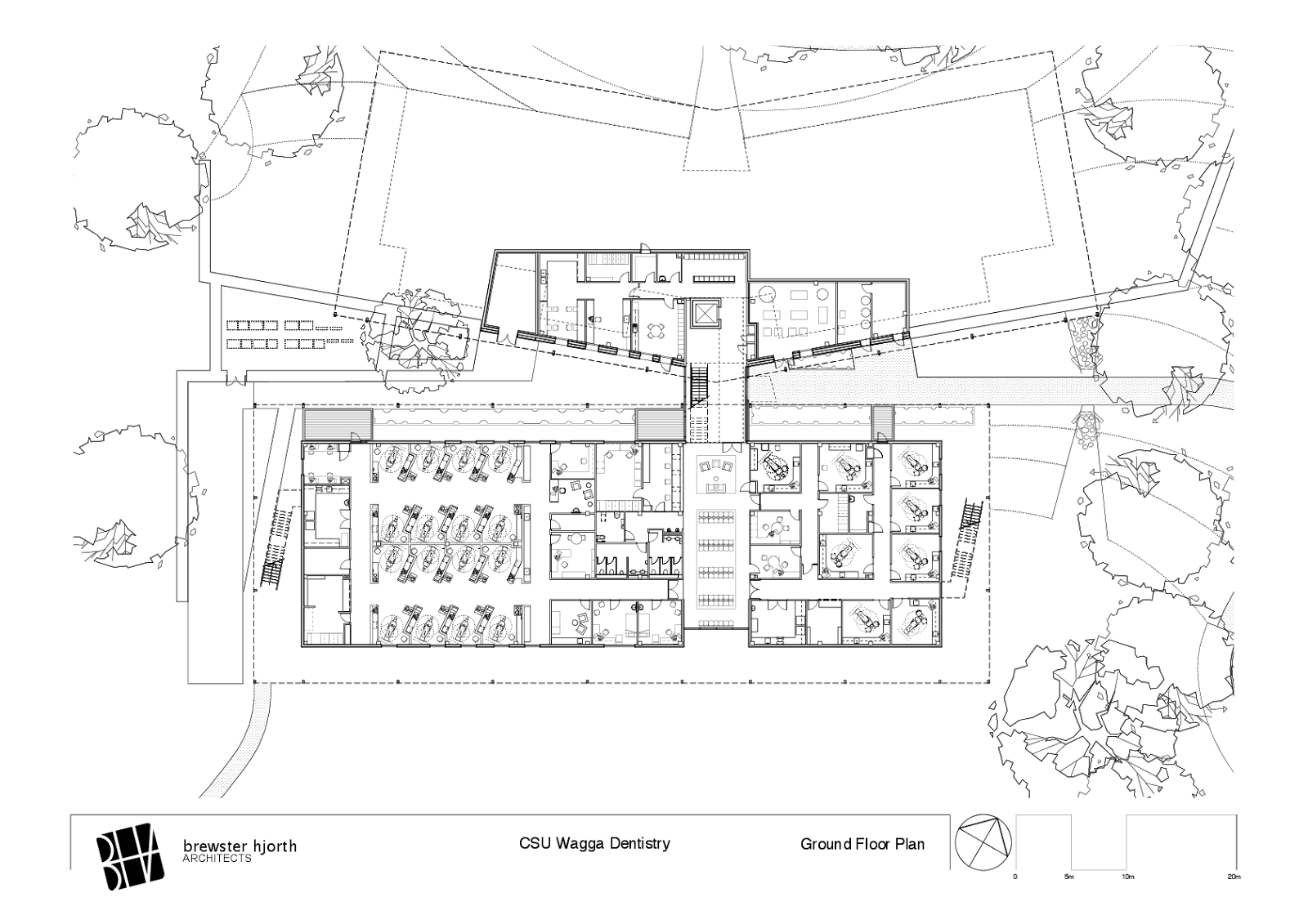 The project is core to a program to bring dental services to rural NSW. The school will care for over 1,000 public patients/ week with a large 24-chair clinic, research laboratories, specialist workshops and training facilities available for local practitioners and a cohort of 150 students. The facility is considered to be the most advanced of its kind in the world. The two storey double wing ‘H’ plan allows for effective operational zoning, very good internal communication paths, and excellent environmental outcomes. The layout provides for separation between the clinics and non-public student zones whilst allowing a visual connection between the simulation areas and the clinics to promote the students’ continuing engagement with patients. The School’s academic teaching and learning areas incorporate world’s best practice simulation laboratories with inspiring and flexible multi-modal teaching spaces and syndicate rooms designed to provide an immersive learning environment.