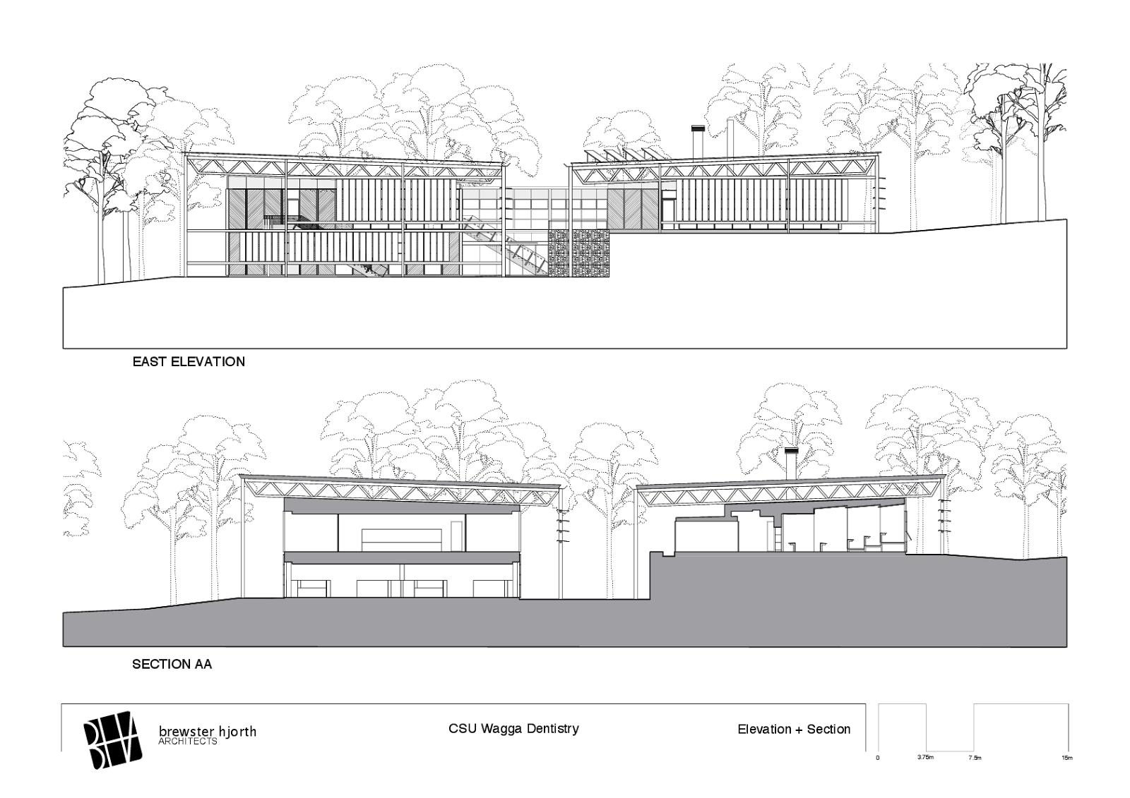 The CSU School of Dentistry building at Wagga-Wagga provides specialist dental teaching facilities for 150 students and a large Public Dental Clinic to serve southern NSW. The building’s design expresses a sophisticated rural aesthetic linking it strongly through form, colour, and materials to its gentle bush site to create a beautiful and striking symbol for the campus.