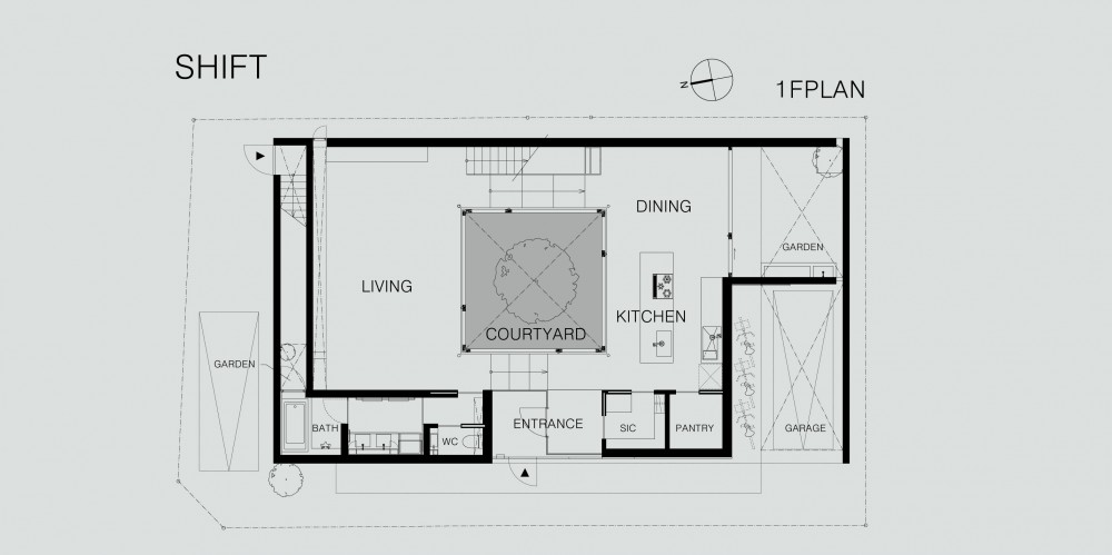 Incorporating an open-air garden within it, the house makes it possible to fully enjoy the Japanese four seasons. The contrast between the external and the internal will help to keep a fresh mind in everyday life.